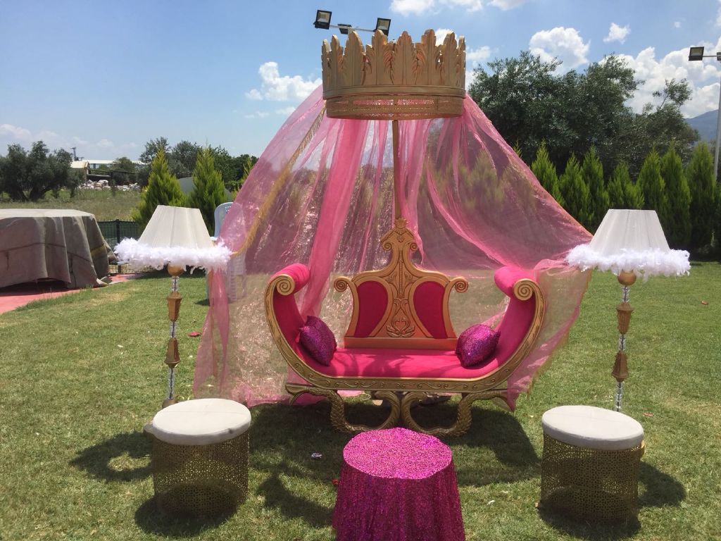 Genellikle altın rengi işlemeli özel kına tahtları en başta kırmızı renk olmak üzere özel kumaşlarla ve tüllerle bezenmektedir. Kına konseptine uygun olarak farklı renk ve modellerde de tercih edilebilecek olan kına tahtları ile Osmanlı dönemine de ışık tutmuş olacaksınız. Her detayı ile kına gecenizin baş köşesinde yer alacak kına tahtları konforunuz için en doğru seçim olacaktır. Rahat edeceğiniz bir mekanın size özel olarak hazırlanması ve oturduğunuz zamanınızı orada geçirmeniz konseptin içinde kusursuz güzelliğinizi ortaya çıkarmanıza ve eğlenceli gecenizi coşkuyla sonlandırmanıza yetecek.