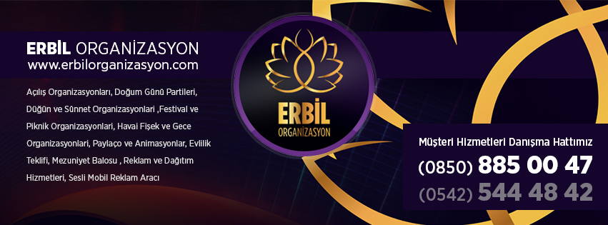 Erbil Organizayon olarak Kına Gecesi ,Açılış Organizasyonları,Doğum Günü Partileri,Düğün ve Sünnet Organizasyonları,Festival ve Piknik Organizasyonları,Havai Fişek ve Gece Organizasyonları,Palyaço ve Animasyonlar,Evlilik Teklifi,Mezuniyet Balosu,Reklam ve Dağıtım Hizmetleri,Sesli Mobil Reklam Aracı gibi her türlü organizasyon hizmetlerini sunan yaratıcı ve yenilikçi bir organizasyon firması olmaktır.